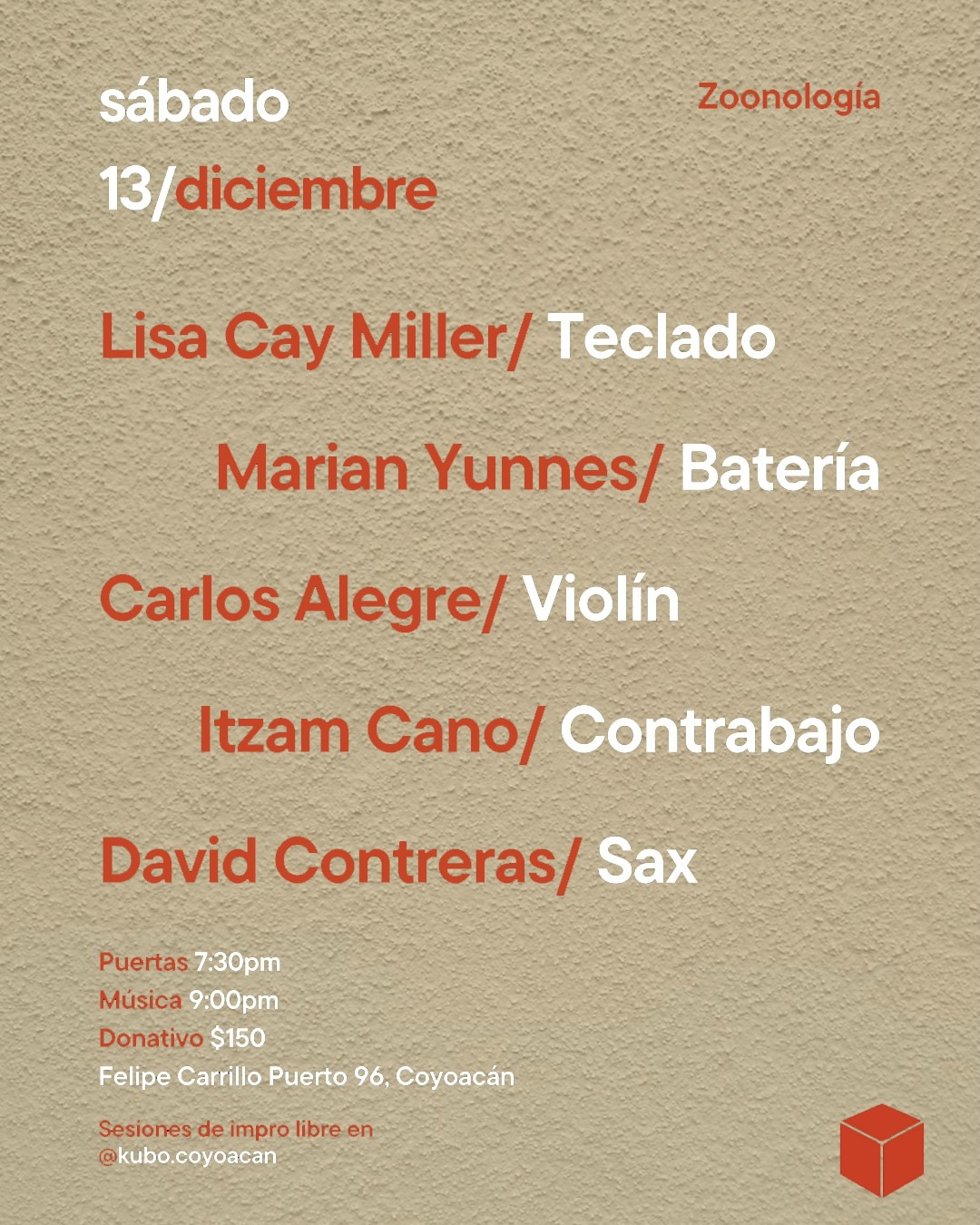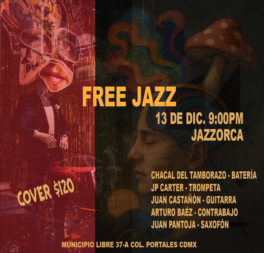 Sábado 13 de diciembre de 2025, 21:00. Jazzorca, CDMX. Con: Chacal del Tamborazo (batería), JP Carter (trompeta), Juan Castañón (guitarra), Arturo Baéz Leer más