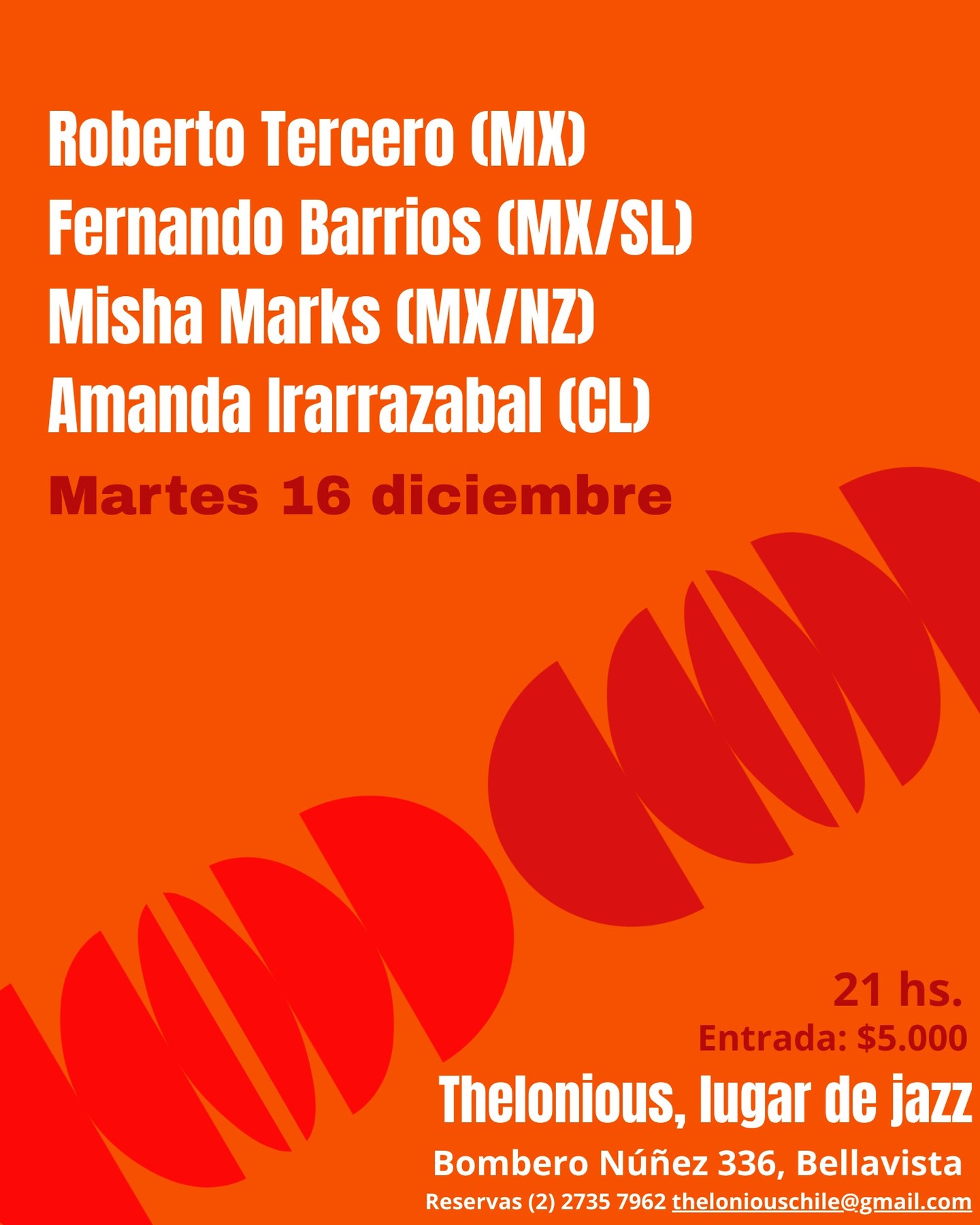 Sábado 29 de noviembre de 2025, 21:00. Café Jazzorca, CDMX. Con: Daniel Paz (clarinetes), Santiago Von (sax alto), Silvestre Villarruel (piano), Rodo Ocampo (batería) y Alejandro Martínez (contrabajo). Leer más