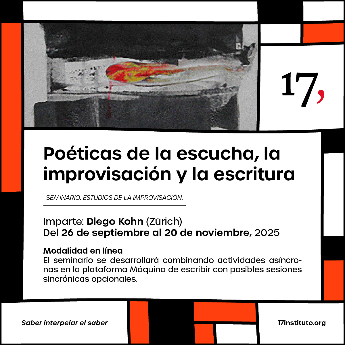 En este primer episodio de 17, Seminarios, Gabriela Olivo de Alba conversa con Diego Kohn y Ricardo Lomnitz sobre “Poéticas de la improvisación, la escucha y la escritura”, seminario propuesto desde el área de Improvisación de 17, Instituto de Estudios Críticos.
